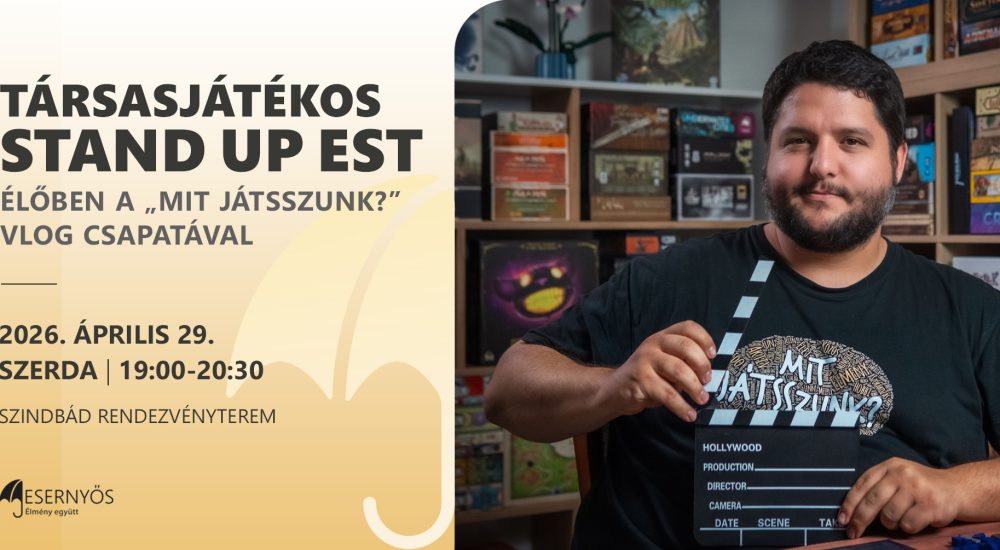 Társasjátékos stand up est élőben a “Mit játsszunk?” Vlog csapatával A Mit Játsszunk? bemutatja: A Világ Legjobb Játékai (és akik játsszák)ÁPRILIS 29. | SZERDA 19:00-20:30 Helyszín: Szindbád rendezvényterem Társasjátékos stand up est élőben a “Mit játsszunk?” Vlog csapatával A Mit Játsszunk? bemutatja: A Világ Legjobb Játékai (és akik játsszák) Miért fáj jobban kiesni, mint amennyire jó nyerni? Mit árul el rólunk az, ahogyan játszunk? És mi történik, amikor a szabálykukac, a szabályértelmező, a túlkomolyan vevő […]