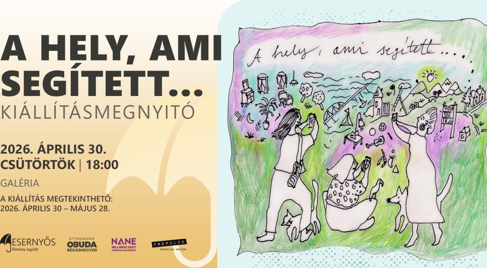 Kiállításmegnyitó: A hely, ami segített…ÁPRILIS 30 – MÁJUS 28. Megnyitó: április 30. csütörtök 18:00 Helyszín: Esernyős Galéria A hely, ami segített… a kilépésben, a változásban, a döntésben, megnyugodni, biztonságba kerülni. Milyen kép jut eszedbe arról, amit átéltél, vagy amit magad mögött hagytál? Photovoice közösségi fotóprojekt a családon belüli erőszakról és a gyógyulásról. · A hely, aminek története van, · […]